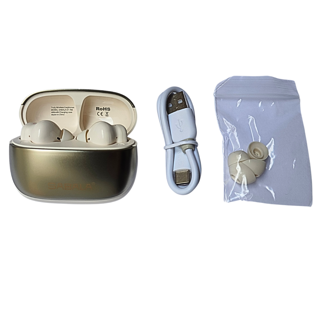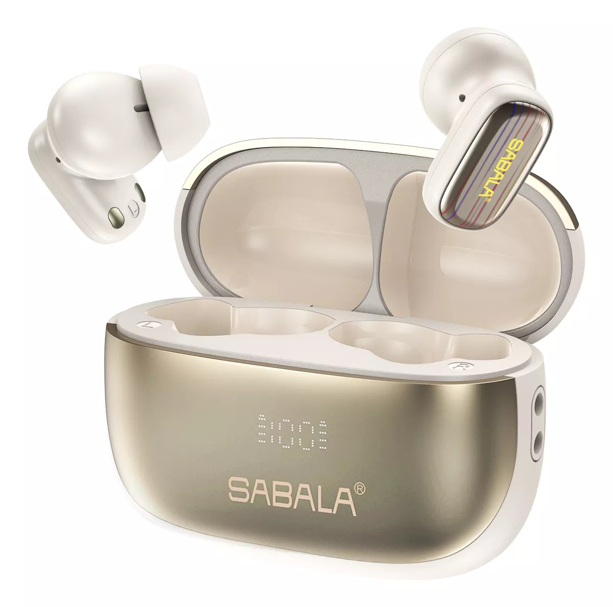 Audífonos Bluetooth 5.4 con estuche de carga Sabala ST 766, cancelación de ruido Dorados