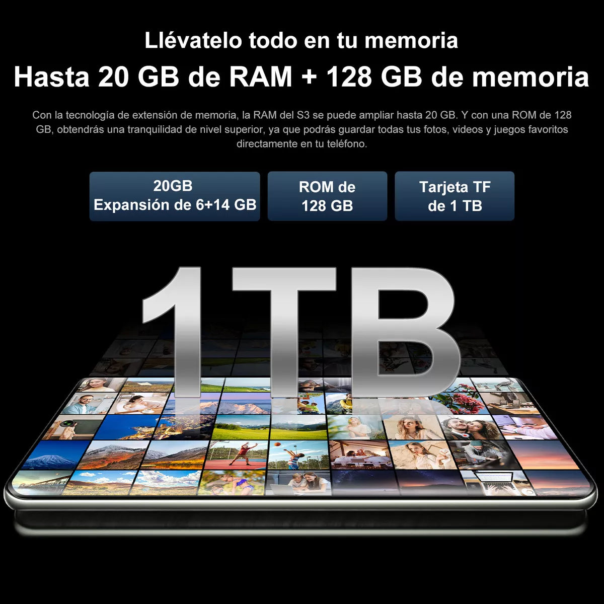 El Fossibot S3 Pro es un smartphone de alto rendimiento diseñado para quienes buscan velocidad, almacenamiento y una pantalla impresionante. Su combinación de 20GB de RAM (6GB + 14GB virtual) y 128GB de almacenamiento lo convierte en una opción ideal para multitareas, gaming y entretenimiento sin límites.