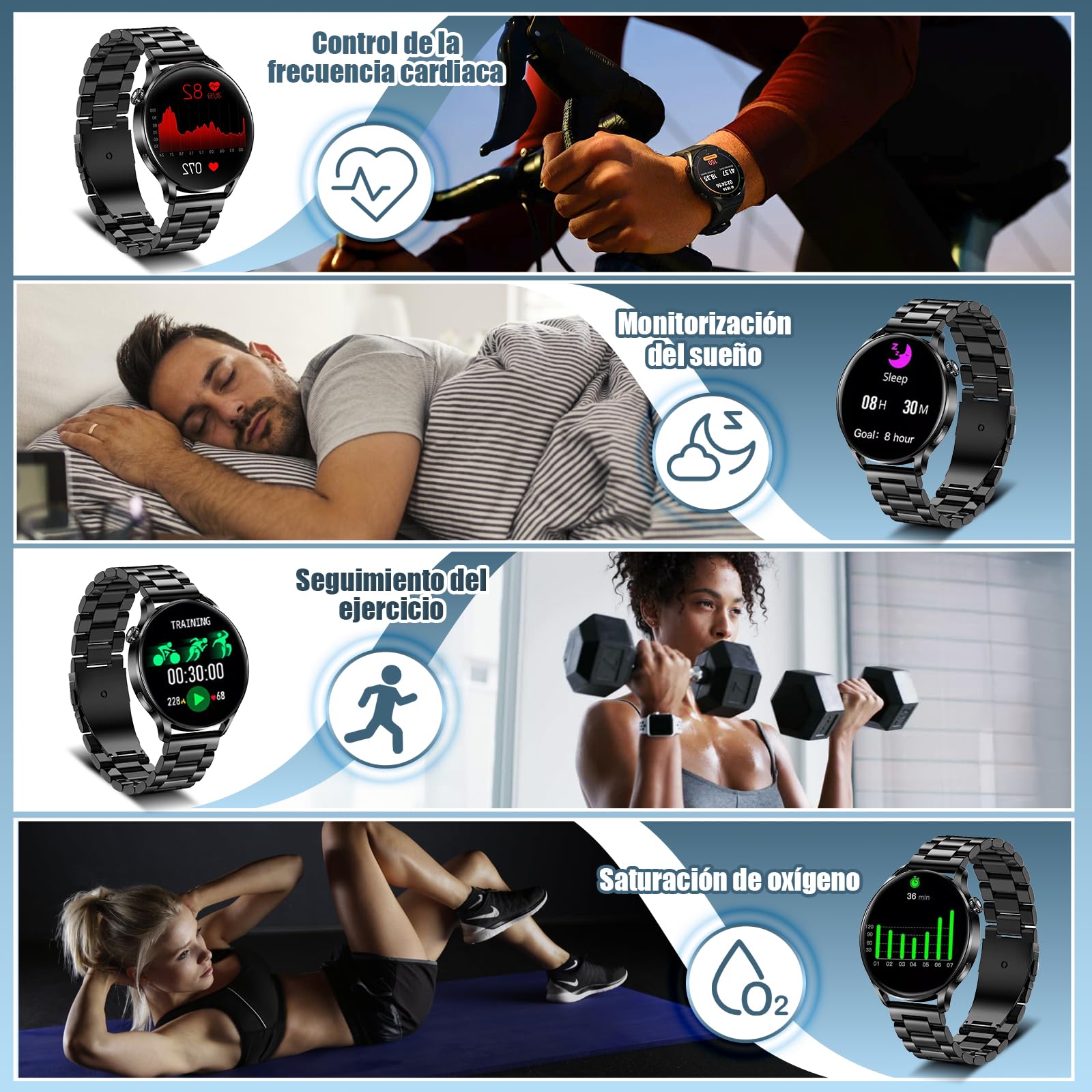 ✅ Diseño premium de acero negro y correa de silicona para mayor comodidad.