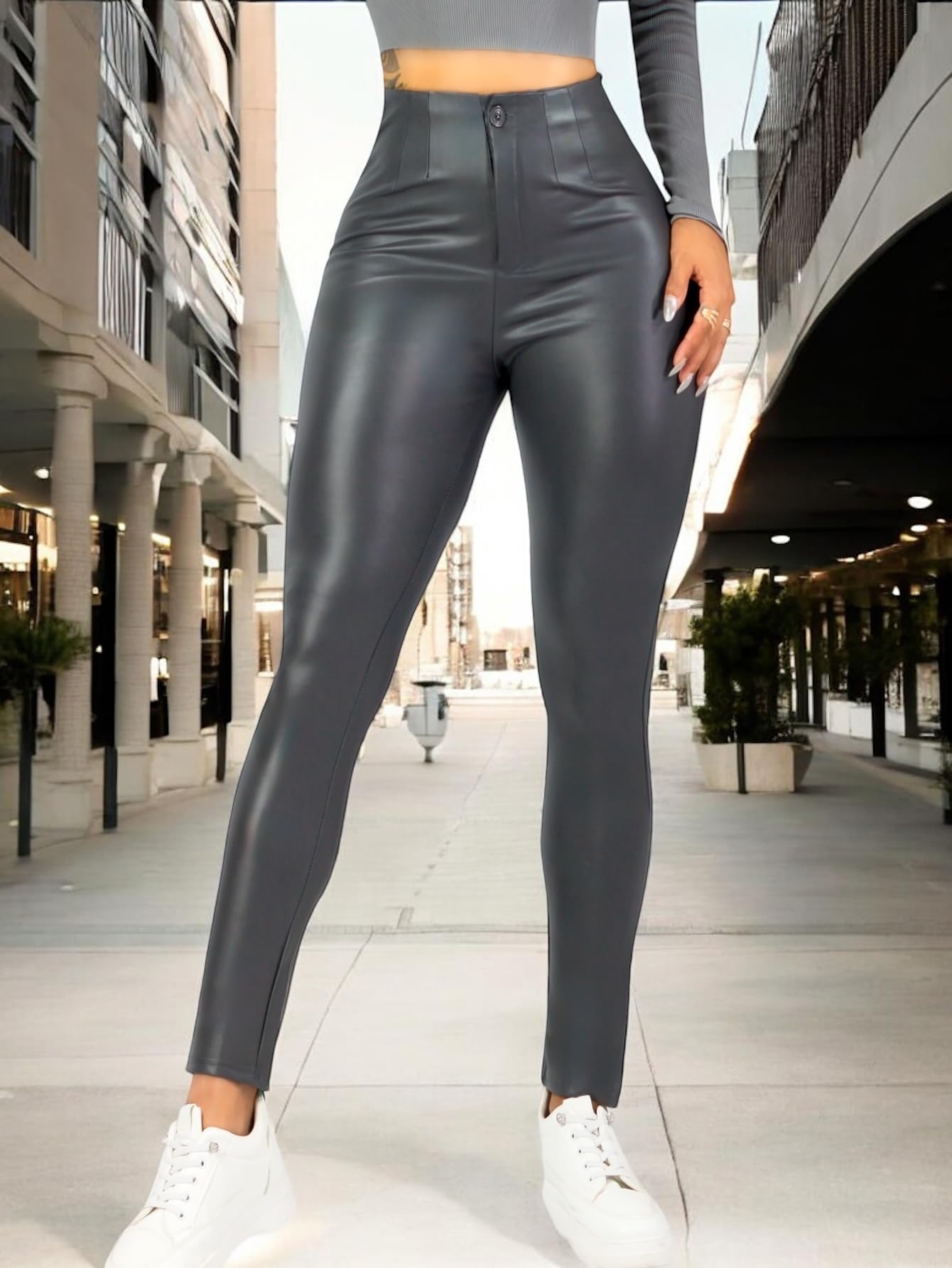 • Material tipo cuero sintético, suave al tacto y con acabado brillante.