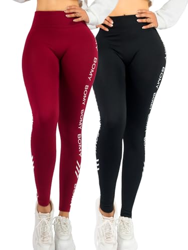Pack de 2 Leggings Casuales de Mujer de Yoga para Dama y Cintura Alta Pantalones Ajustados con Control de Abdomen no transparentan