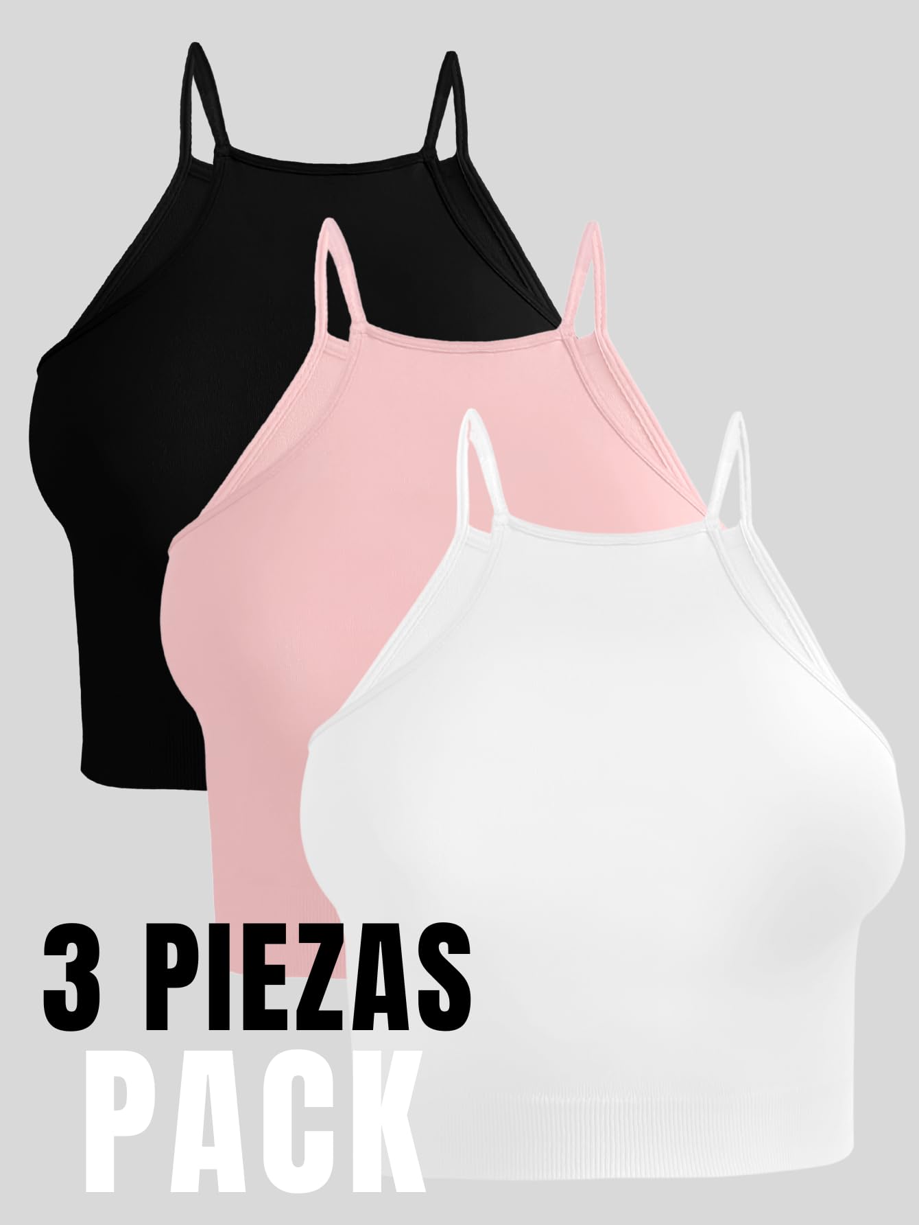 Pack de 3 Tops de Mujer Deportivo o Casual Blusas Croptop básicos Dama Tirantes Camiseta Corta Dama Stretch