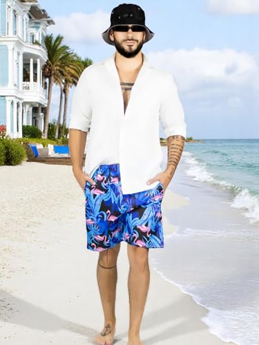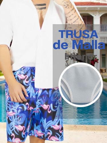 Traje de Baño Hombre Estampado Trajes de Baño de Playa de Secado Rápido con Forro de Mallas, Bañador Corto para Playa, Natación o Piscina