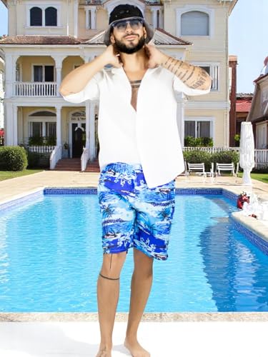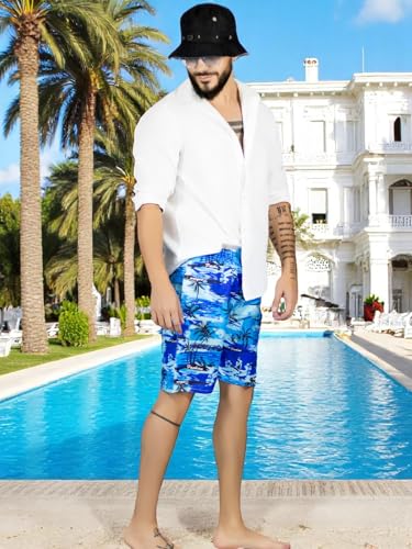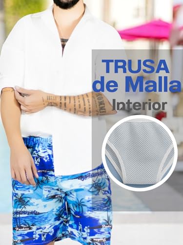 Traje de Baño Hombre Estampado Trajes de Baño de Playa de Secado Rápido con Forro de Mallas, Bañador Corto para Playa, Natación o Piscina