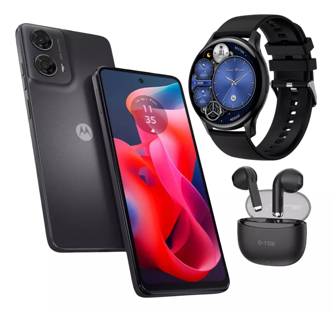 Celular Moto G24 Smartphone Con Smartwatch G-tide R5 Y Audífonos G-tide L21 De Regalo