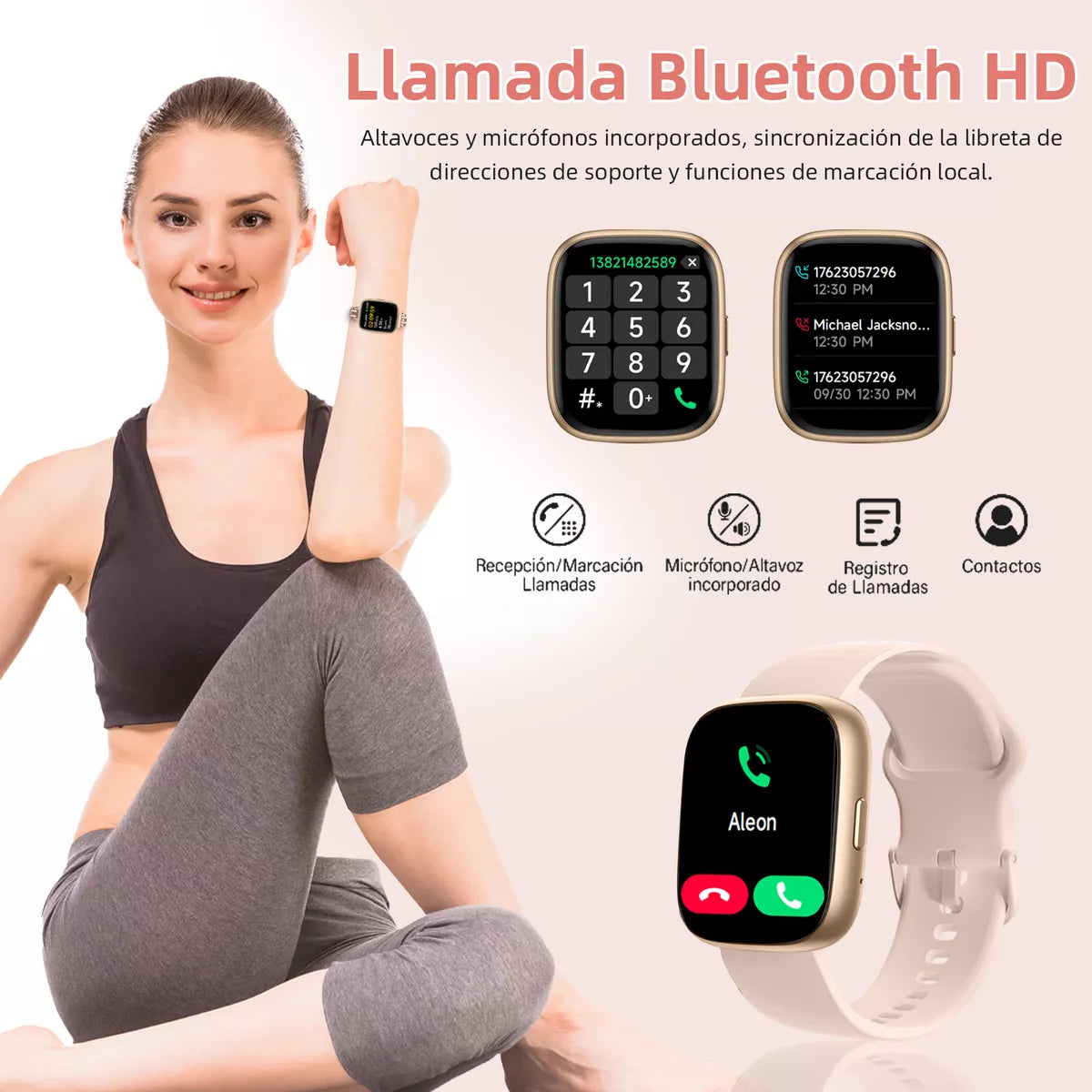 - Llamadas y Notificaciones: Responde llamadas y recibe notificaciones de apps como WhatsApp, Facebook y más.