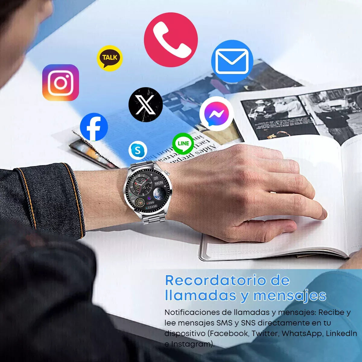 - Notificaciones: Recibe mensajes de WhatsApp, Facebook, Twitter, y otras aplicaciones directamente en el reloj.