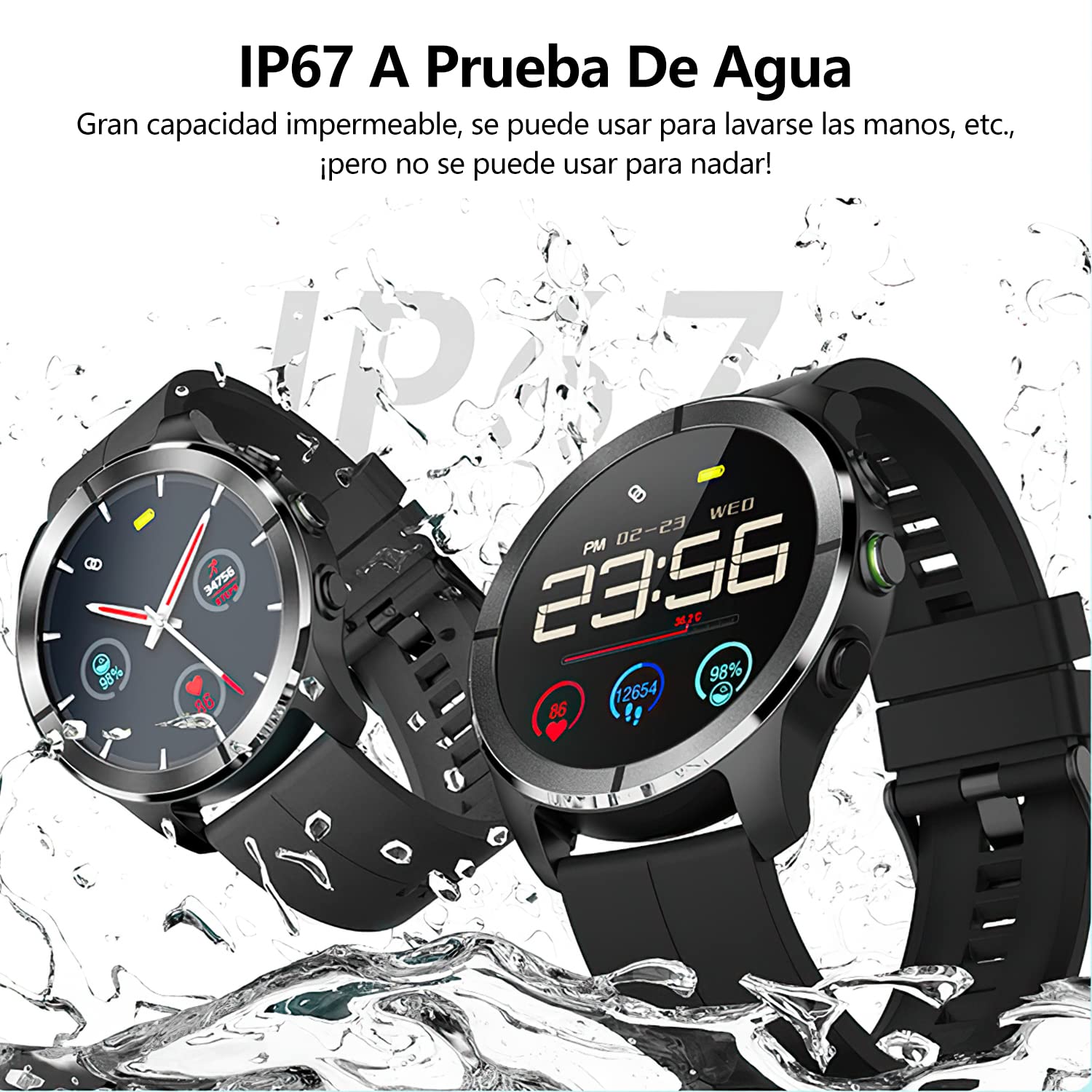Preparado para el deporte: Con resistencia al agua IP67, este smartwatch es ideal para actividades cotidianas como lavarse las manos o entrenar bajo la lluvia. Su batería de larga duración ofrece hasta 7 días de uso activo y 30 días en modo de espera.