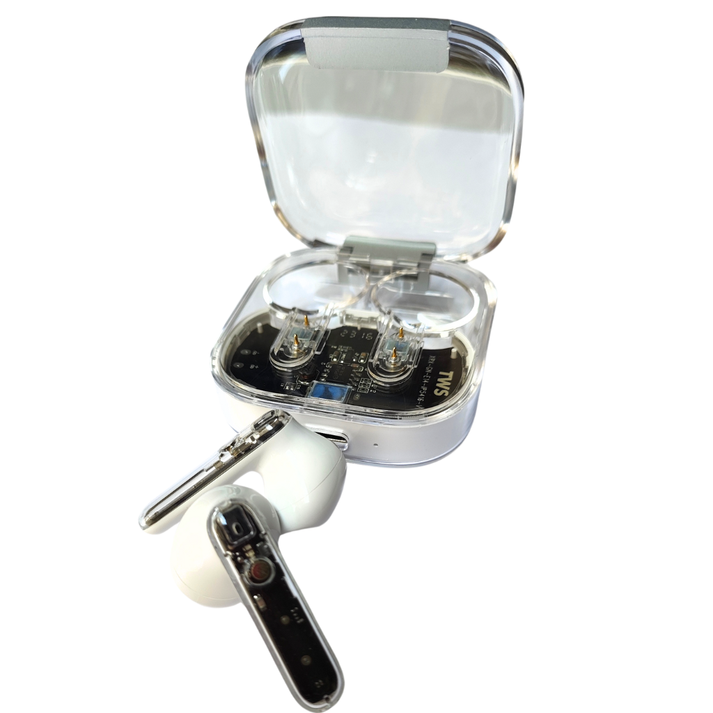 LosSabala ST 60 tienen un diseño moderno con caja y audífonostransparentes, permitiendo ver la tecnología avanzada que contienen. Conaltavoces mejorados, brindan un sonido estéreo de alta calidad paramúsica y llamadas. Gracias a Bluetooth 5.3, ofrecen una conexión rápida,estable y de bajo consumo.