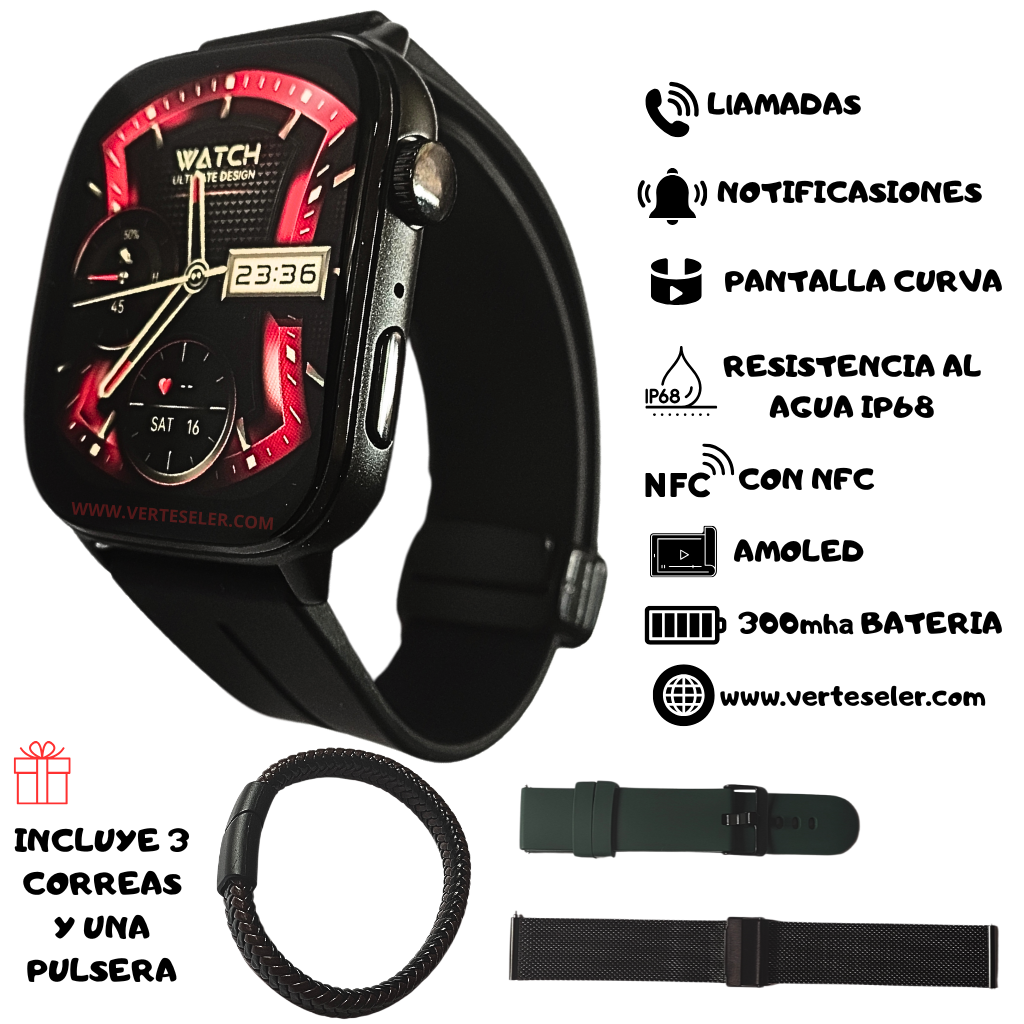 Reloj inteligente G-tide S6 pro smartwatch, pantalla curva amoled, con 3 correas y una pulsera regalo, llamadas, notificaciones