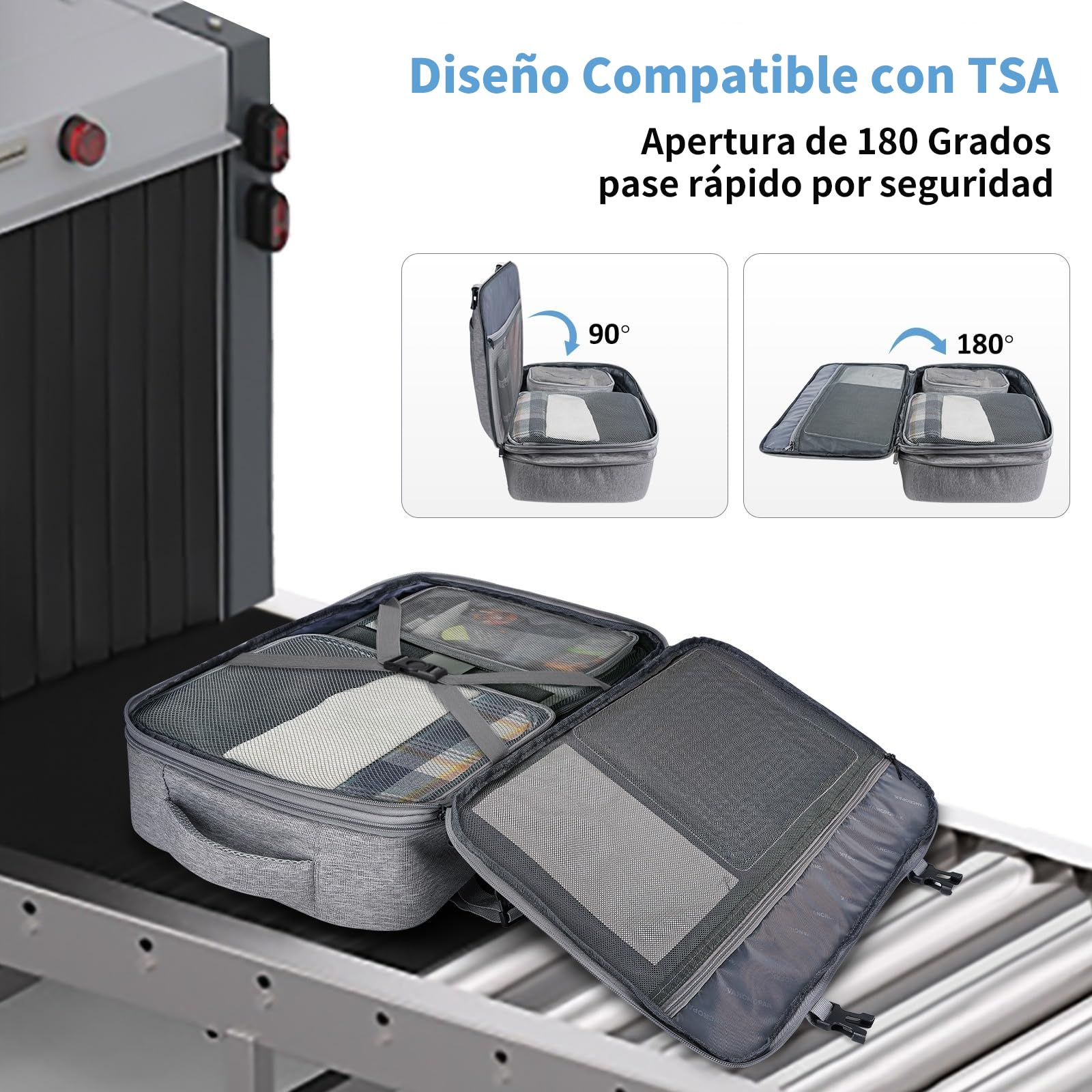 - ✈Fácil de organizar: compartimento principal con bolsillo de malla separado y espacio amplio para almacenar diferentes equipos de viaje, correas elásticas de compresión internas que ofrecen una buena protección para todo. Compartimento frontal con varios bolsillos para guardar cuadernos, bolígrafos, llaves, auriculares y otros objetos pequeños. Un bolsillo trasero antirrobo es adecuado para objetos de valor. Bien hecho para viajes internacionales en avión y viajes de trabajo como un regalo de viaje para hombres y mujeres