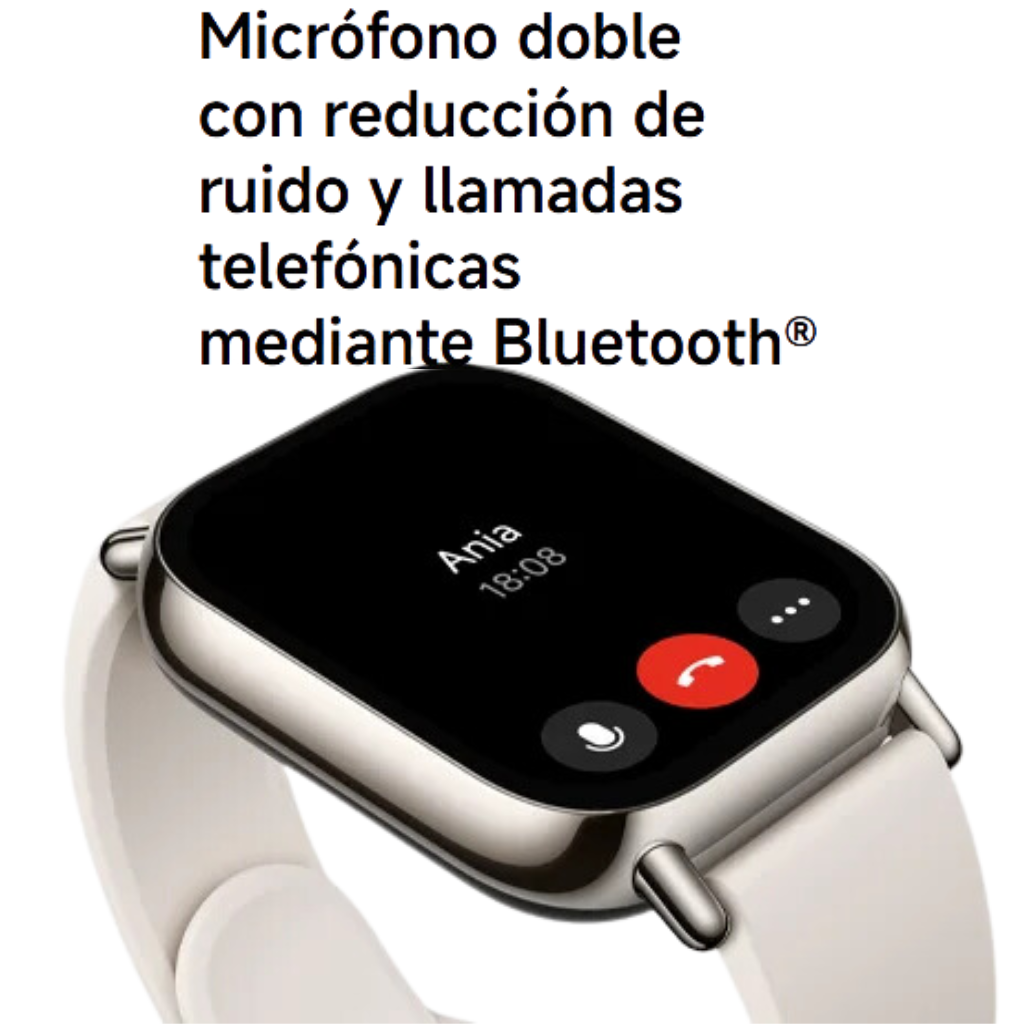 Gracias a lasllamadas Bluetooth y el micrófono dual con cancelación de ruido,disfrutarás de una comunicación clara y sin interrupciones. El sensor defrecuencia cardíaca, medición de oxígeno en sangre, acelerómetro ygiroscopio te permitirán monitorear tu salud de forma precisa en todomomento. Compatible con dispositivos Android 8.0 y superior o iOS 12.0en adelante, y con el sistema operativo Xiaomi HyperOS, este reloj seadapta perfectamente a tu estilo de vida dinámico.